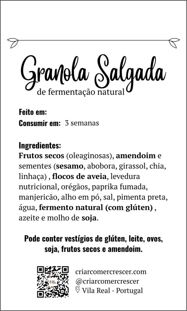 Esta granola salgada de fermentação natural é crocante, nutritiva e cheia de sabor, ideal para quem procura opções diferentes e prefere salgados a doces. A combinação de flocos de aveia, frutos secos, sementes e especiarias torna-a perfeita para enriquecer saladas, sopas, bowls ou até servir como snack, eu gosto também de a comer com iogurte grego, fica top!